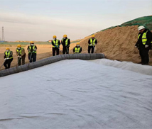 +more膨潤土防水毯又叫膨潤土墊每平方克重在3000克--6000克之間,屬于重貨因此在鋪設時現(xiàn)場人員在10人左右,材料鋪設后所有人員負責調(diào)整相鄰兩卷防水毯搭接30cm-50cm,調(diào)整完成后安排一人在搭接重合面撒搭接粉,相鄰兩卷完成后在進行下一卷的鋪設,該兩卷完成后如需回填在鋪設第三卷過程中前面兩卷就可以回填了,形成流水線作業(yè)?!?/p> +more